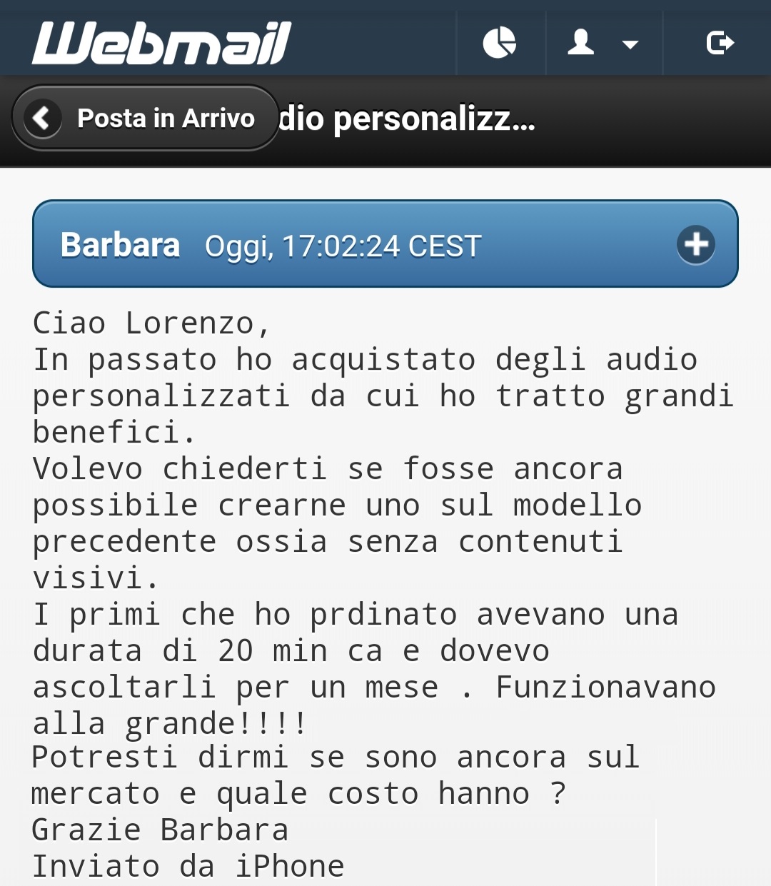 Siccome abbiamo quotidianamente decine di richieste puoi chiedere massimo 2 audio personalizzati per volta.